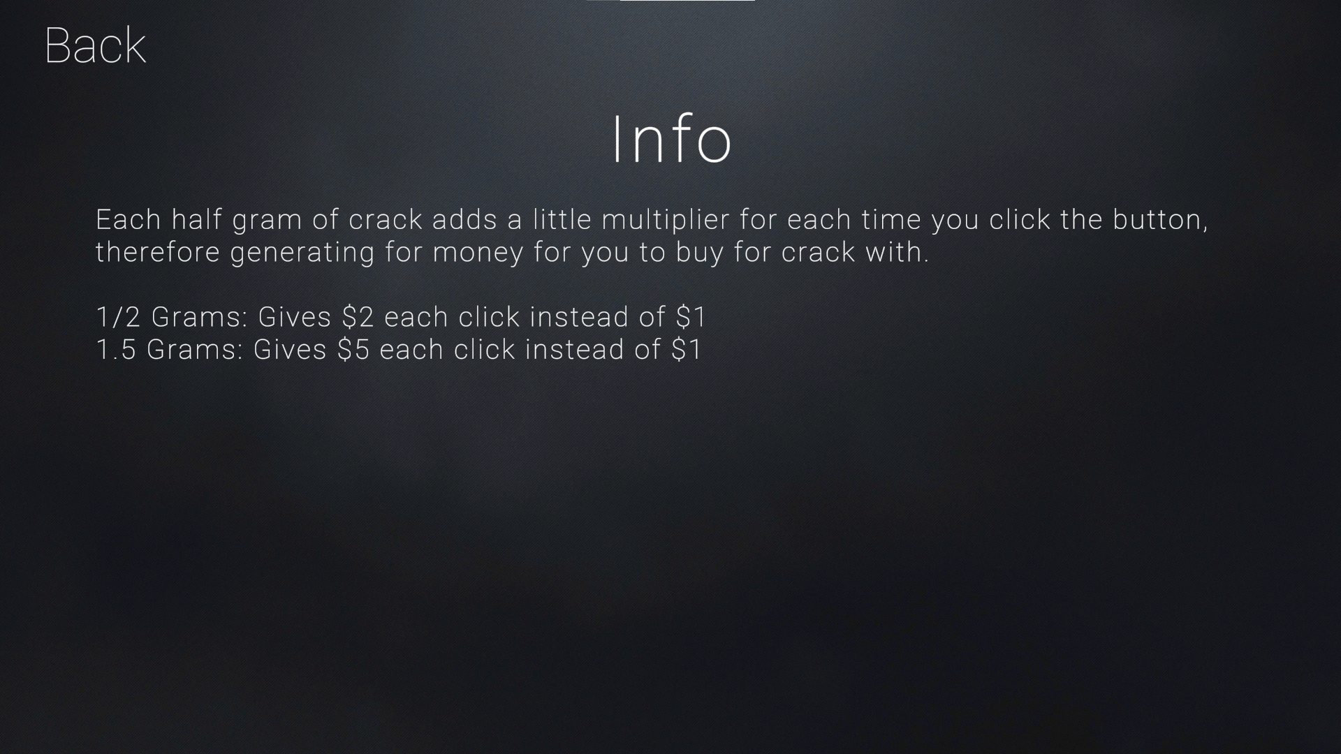 Click to get more and more money, to buy more crack. Buying more crack equals more money each time you click because well crack makes you mad athletic.